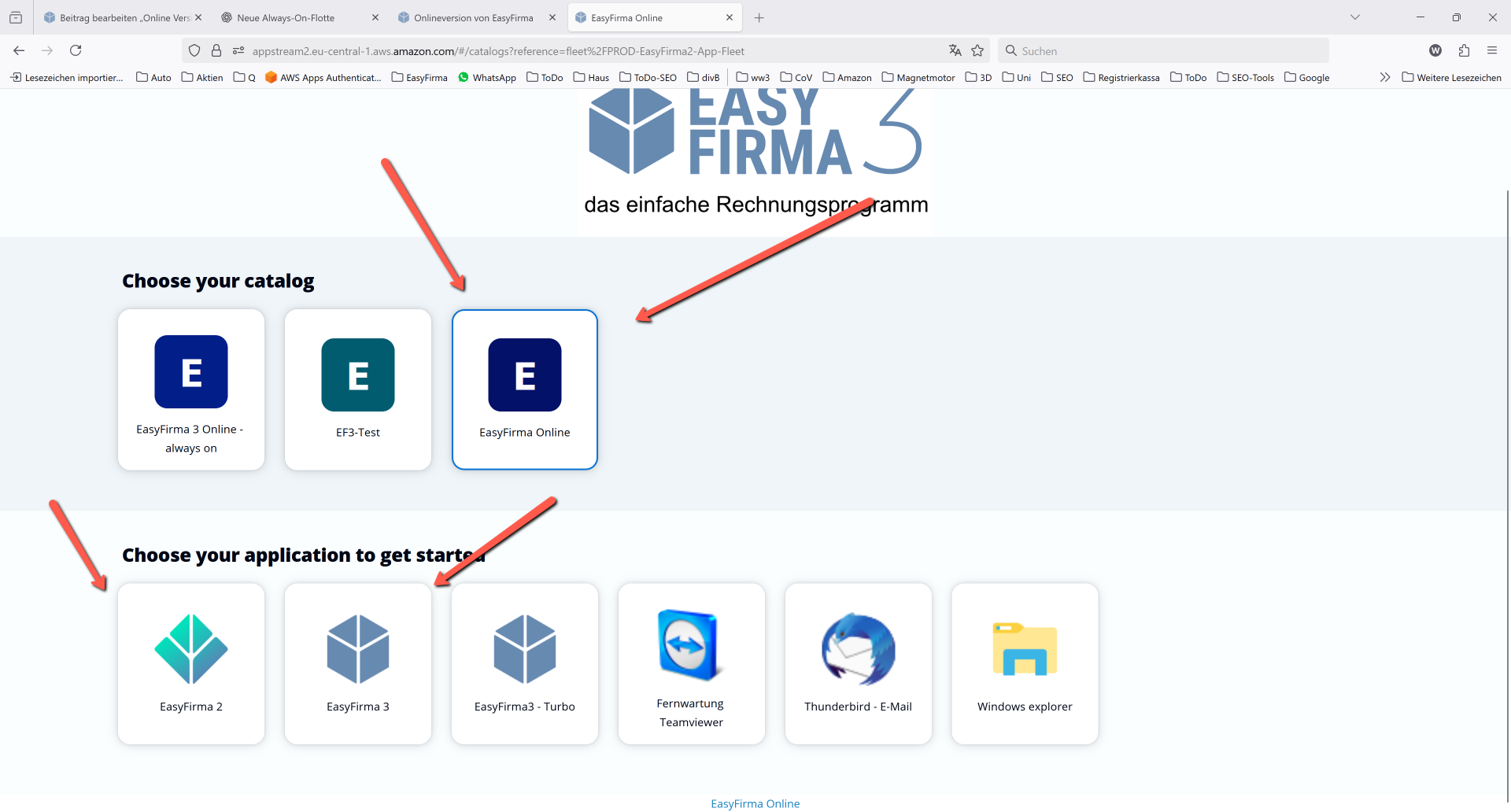 Öffnen Sie wie gewohnt die EasyFirma Online Version: https://appstream2.eu-central-1.aws.amazon.com/userpools#/signin?ref=FZVyUluBQN