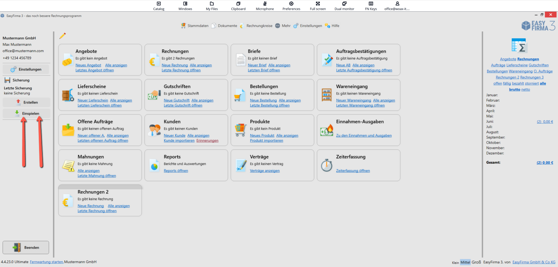 Wählen Sie „Sicherung einspielen“ und importieren Sie die zuvor erstellte Datensicherung.