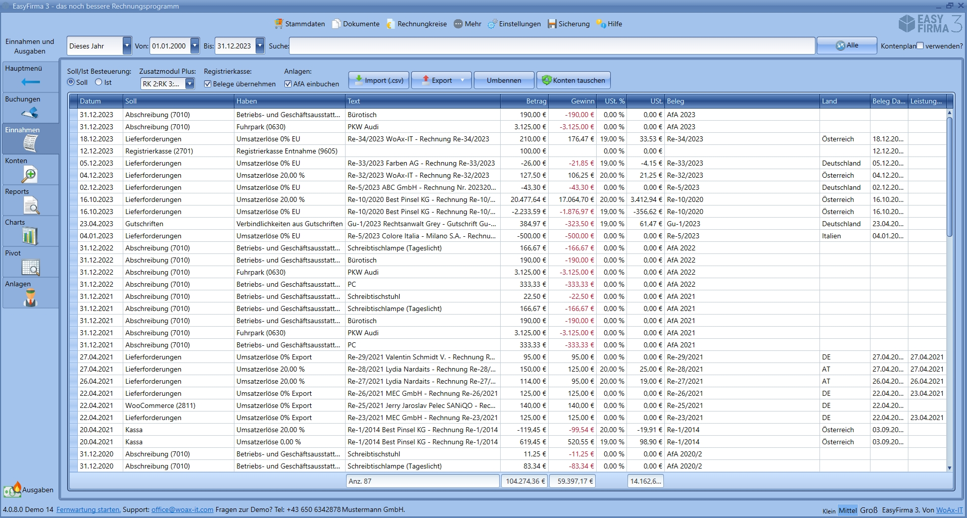 Die Einnahmen- und Ausgabenverwaltung von EasyFirma bietet eine benutzerfreundliche Oberfläche zur effizienten Erfassung und Kategorisierung finanzieller Transaktionen. Sie ermöglicht detaillierte Übersichten, Echtzeit-Updates sowie die Erstellung von Berichten und Umsatzsteuervoranmeldungen. Die Anlagenbuchhaltung unterstützt bei der Dokumentation von Neuanschaffungen und Abschreibungen.