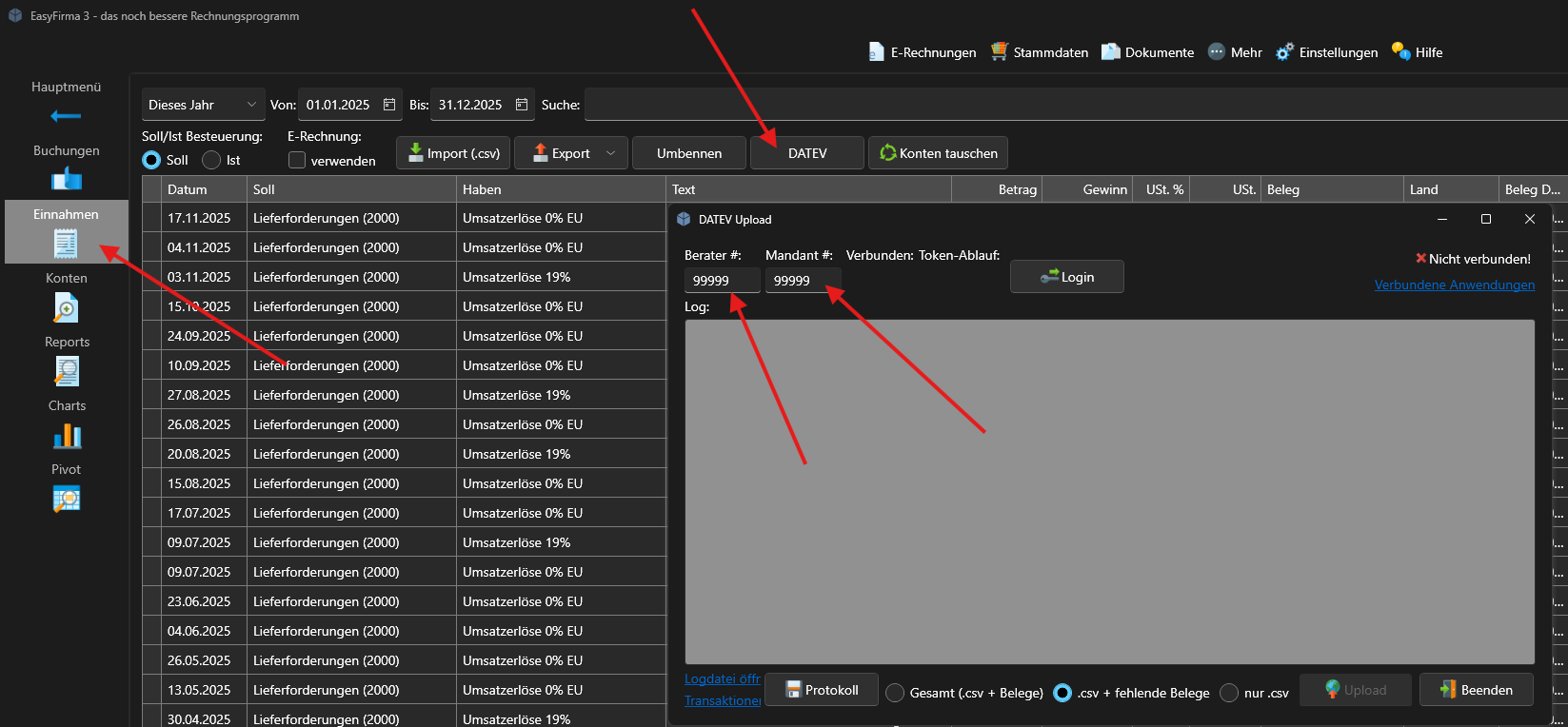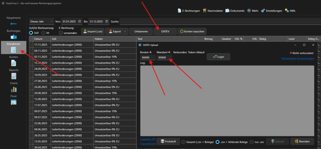 Tragen Sie Ihre Beraternummer und Mandantennummer ein.
