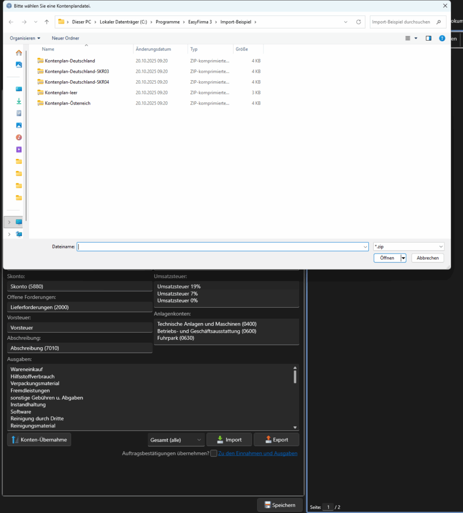 - Wählen Sie eine der ZIP-Dateien aus dem EasyFirma-Importordner aus.